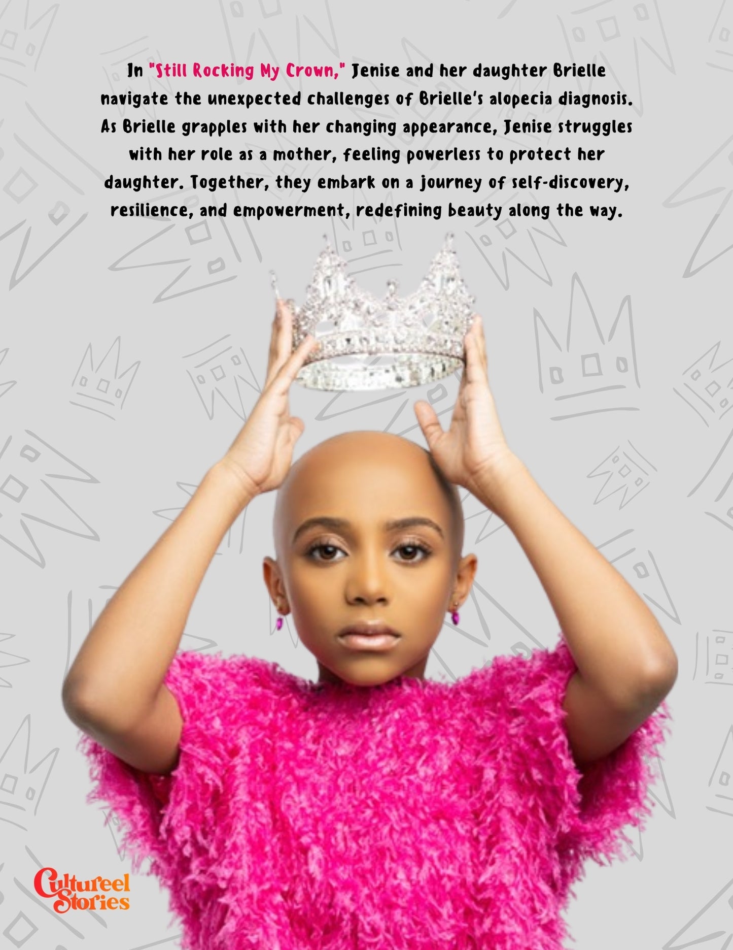 "Still Rocking My Crown" follows Jenise and her 10-year-old daughter, Brielle, as they face the unforeseen challenges of Brielle's alopecia diagnosis. Brielle had been a rising star in the modeling world since she was a baby, her beauty earning compliments wherever she went. But when alopecia occurred at the age of eight, robbing her of her hair, brows, and eyelashes, Brielle felt she had lost more than just her physical look; she believed she had lost her identity. As Brielle struggles with her changing appearance and the issues that come with it, Jenise wrestles with her own concerns and uncertainties as a mother. She lost her sense of control and ability to protect her daughter. Together, they go on a journey of self-discovery, perseverance, and empowerment, redefining what beauty truly means along the way. Through candid storytelling and reminiscent images, "Still Rocking My Crown" allows readers to experience the highs and lows of Brielle and Jenise's journey, from the initial shock of hair loss to the empowering realization that beauty exists inside. Their narrative is one of victory over hardship, as Brielle continues to succeed in beauty pageants, acting, and singing, demonstrating that the show must go on regardless of the hurdles she meets. Brielle exemplifies the human spirit's resiliency and serves as a beacon of hope for anyone who has ever doubted their own value. Brielle and Jenise's story conveys a message of courage, acceptance, and love, encouraging readers to embrace their own individuality and find strength in their vulnerabilities.